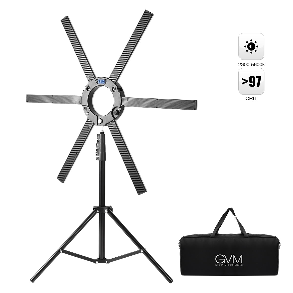 Gvm 600s Led Ring Light 90w Dimmable Led Video Light Kit For Live Broadcast Youtube Cri 97 3200k 5600k Walmart Com
